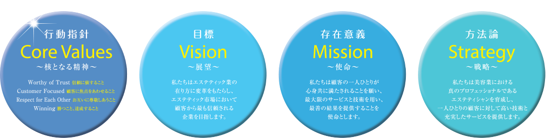 私たちは、これら4つのワードを指針に、自らの手によってエステティックの新しい時代を創造し続けます。